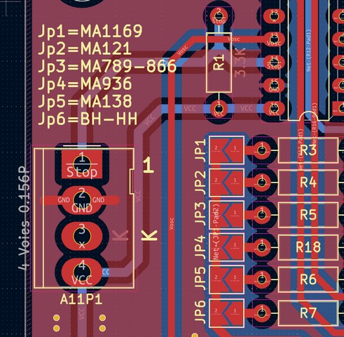 - Pour choisir le type de carte, il suffira de faire un pont de soudure, sur UN des JP notifiés, voir la sérigraphie sur la carte (sur la carte BH et HH sont respectivement Black Hole et Haunted House)