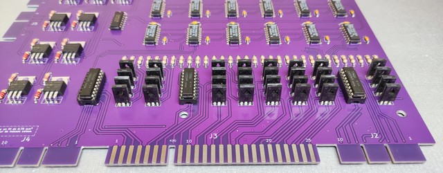- Version LARGE de la carte (format amélioré permettant d'augmenter la surface de cuivre, meilleure capacité en charge des masses, carte plus large de 10 mm soit 188 mm total). Vérifiez la monte avant surtout dans le cas d'un sys80B genre jeu avec la carte en vertical et non en horizontal.