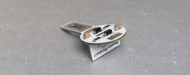 Sur la mini carte d'insert, sont notifiées les zones de soudures LAMPES + et Lampes1 Lampes2 - qui sont les polarités à respecter (le +lampes va sur le fil chaîné sur le plateau avec la vis et le - lampes va en direction de la driver)